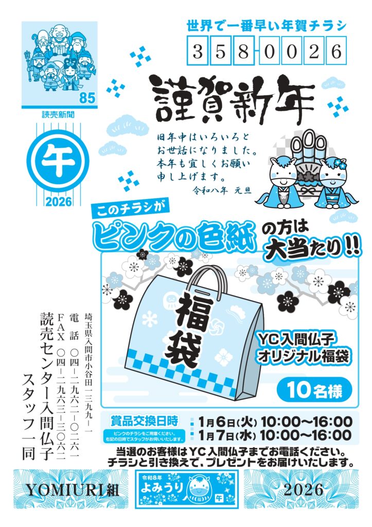 世界で一番早い年賀チラシ 新春プレゼント!のお知らせ